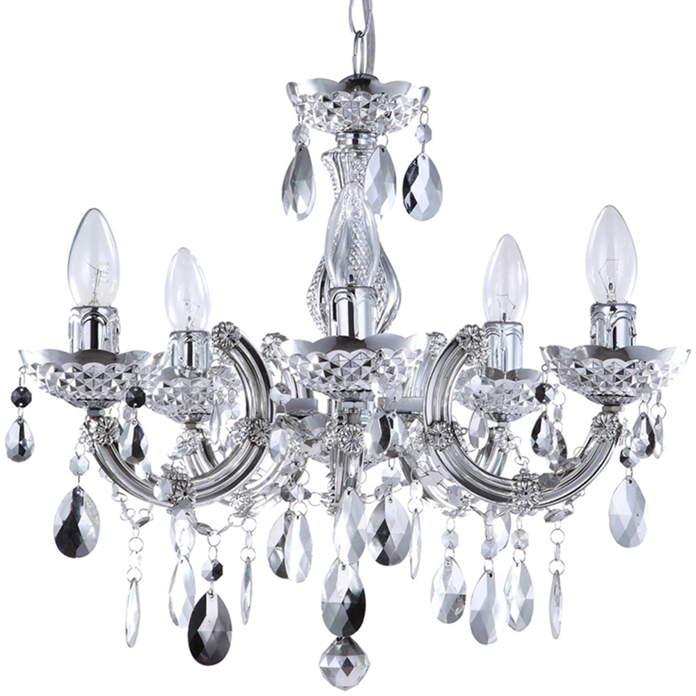 Introduce refined glamour to your home with the Inlight Marie Therese 5 Light Chandelier in Silver. Showcasing elegantly sweeping arms and delicate crystal-effect droplets, this light fitting is finished in a sleek silver, guaranteed to add a luxurious focal point to any room.