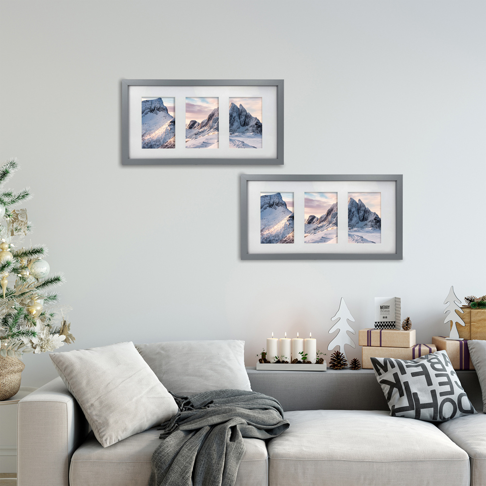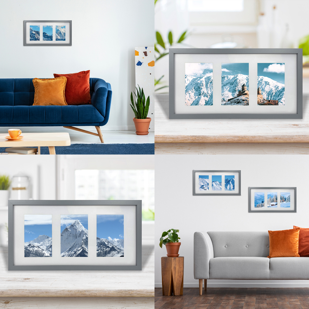 Showcase your cherished memories in style with this sophisticated multi-aperture photo frame. Its contemporary design introduces an element of elegance to any home or office space. Fill it with snapshots of your most treasured moments – from family holidays to the smiling faces of loved ones. This versatile frame displays three 14 x 9 cm (6x4) photos, either horizontally or vertically, and can be displayed on a tabletop or hung on the wall to add a personal touch to your décor. Crafted with a durable, eco-friendly wood frame and a clear acrylic display, it’s designed for lasting beauty. Wipe clean with a soft, dry, lint-free cloth. Perfect as a thoughtful gift for birthdays, weddings, anniversaries, Mother's Day, Father's Day, Valentine's Day, Friendship Day, or any other special occasion.