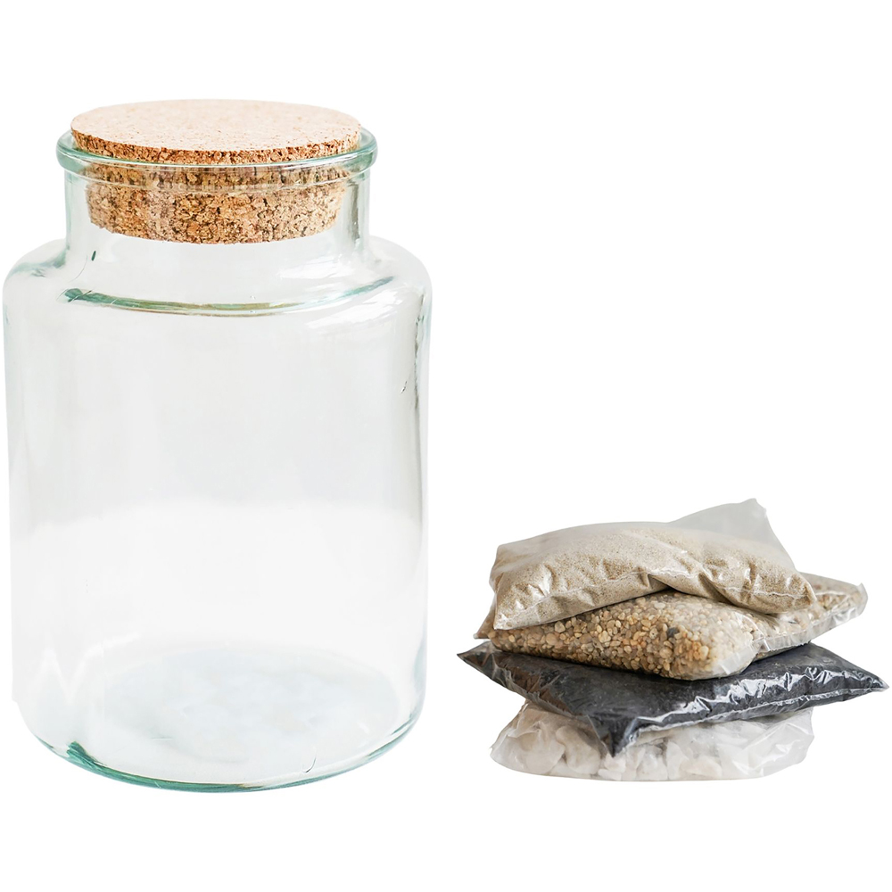 Craft your own miniature world with the Ivyline Bottle Shape Terrarium DIY Kit in large. This premium glass terrarium provides all the essentials to build a thriving ecosystem: charcoal, gravel, sand, and decorative rocks are all included. Simply add your chosen plants, position the lid to seal it, keeping the design waterproof and raising the humidity inside the terrarium. Watch your paradise grow. Ethically sourced and made in Europe from 30% recycled glass, this bottle-shaped terrarium lets you create a beautiful, sustainable environment within your home.
