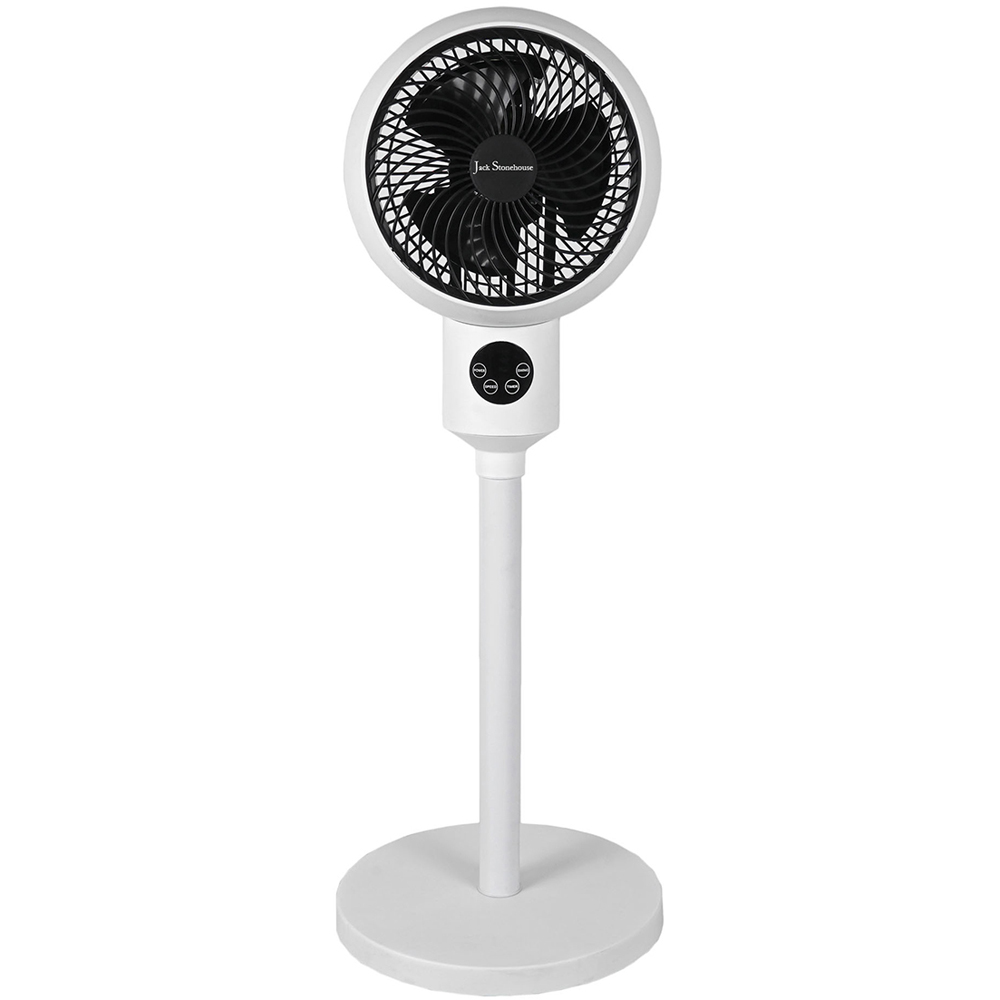 Enjoy instant cooling comfort with the 33-inch Jack Stonehouse Black and White Pedestal Fan. This stylish, free-standing fan quickly circulates air throughout your room, eliminating hot spots and creating a refreshing atmosphere. The unique spiral grill and 90° automatic oscillation ensure maximum cool air distribution. Energy-efficient operation means faster heat dissipation and lower energy bills. Control fan speed, oscillation, and the 7.5-hour timer effortlessly with the included remote control and digital touch display. Sleep soundly and wake refreshed thanks to this fan's gentle cooling breeze.
