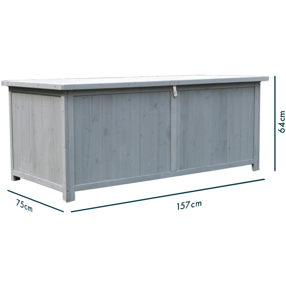 The Jack Stonehouse Small Garden Storage Cabinet is perfect for keeping your outdoor essentials organised. Ideal for storing away garden tools, toys, cushions, and much more, this grey wooden cabinet offers 600L of secure storage. A lockable latch (padlock not included) keeps contents safe, while internal plastic sheeting provides extra protection from the elements. Its splash-proof design and high-quality materials ensure durability. With a robust 200kg weight capacity, it even doubles as sturdy extra seating.