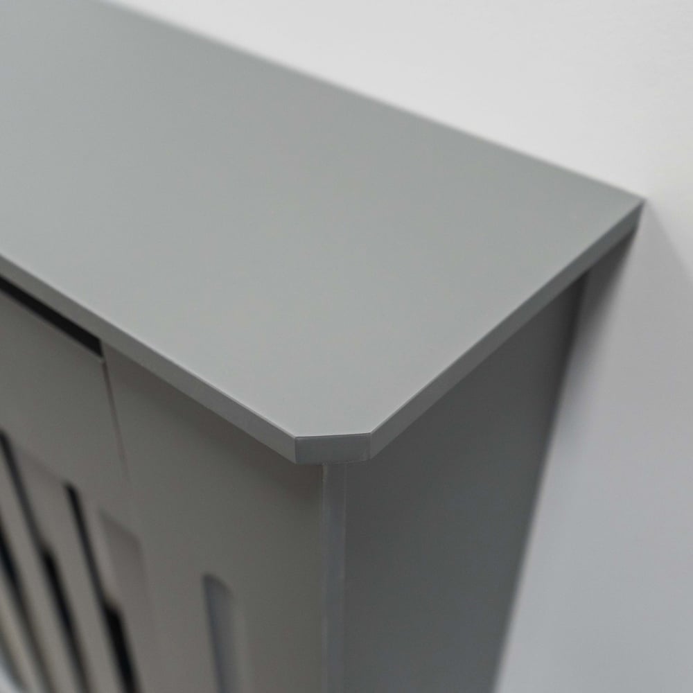 Elevate your home',s style with the Jack Stonehouse Grey Matt Vertical Line Radiator Cover. This large cover, finished in a contemporary grey with a stylish vertical line design, is a stunning update that won',t compromise on heat distribution. Its elegantly chamfered edges add a touch of sophistication, offering a cost-effective alternative to radiator replacement. Perfect for smaller homes, this cover cleverly provides extra storage space, transforming your radiator into a display area for cherished ornaments. High-quality materials and improved packageing ensure a superior product. All fittings for discreet wall mounting are included for a seamless finish, and simple self-assembly makes installation a breeze.