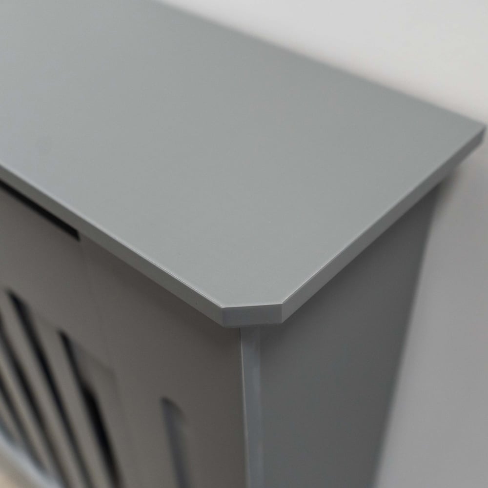 Elevate your home',s style with the Jack Stonehouse Grey Matt Vertical Line Radiator Cover (Small). This stylish cover, finished in a contemporary grey with a chic vertical line design, discreetly conceals your radiator while ensuring efficient heat distribution. Featuring elegantly chamfered edges, it offers a sophisticated update without the expense and hassle of radiator replacement. Perfect for smaller properties, this unit cleverly provides extra storage, transforming your radiator into a charming display area for cherished ornaments. High-quality materials and packageing are complemented by easy self-assembly and all necessary fittings for an invisible, flush wall mount. A seamless and refined finish is guaranteed. Size: Small.