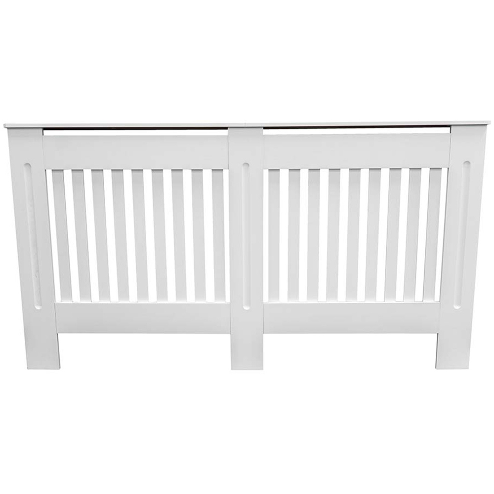 Transform your radiator and your room with this stylish radiator cover. Its clean, vertical lines create a stunning focal point, seamlessly blending with any décor. Finished in a fresh, neutral white with a modern vertical grill and neatly chamfered edges, it effortlessly conceals outdated radiators. Offering ample display space for cherished plants, ornaments, or pictures, this cover is both practical and elegant. Made from durable MDF for lasting quality, it’s designed for simple self-assembly, including all necessary fittings for an invisible wall mount. A budget-friendly choice without compromising on quality, this large cover ensures even heat distribution while adding a touch of sophistication to your home.
