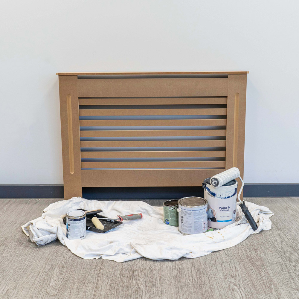 Elevate your living space with this unfinished horizontal radiator cover. A stylish and practical solution, this elegant unit is ready for you to paint, allowing you to create a truly bespoke piece that perfectly complements your home',s décor. Discreetly concealing unsightly radiators while ensuring efficient heat distribution, this cover offers both functionality and aesthetic appeal. Use it to save money by hiding, rather than replacing, your existing radiator, transforming a drab feature into a sophisticated focal point. The cover also provides valuable extra surface area, ideal for displaying cherished ornaments or photographs. Its contemporary design is versatile enough to enhance a wide range of interior styles. Simple to assemble, this durable MDF cover includes all necessary fittings for a seamless, wall-mounted installation. Available in Medium.