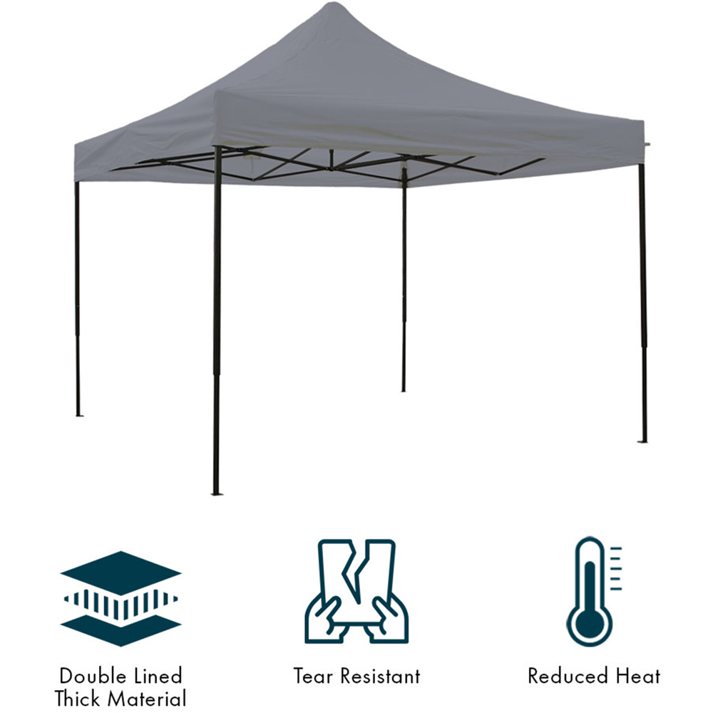 Seeking a gazebo that blends style with effortless setup? The Jack Stonehouse 2.5 x 2.5m Dark Grey Pop Up Gazebo with sides provides practicality and convenience in equal measure. Ready for use in mere minutes, its swift deployment involves a simple walk-out frame assembly with a partner, canopy attachment, leg extension, and ground securing.