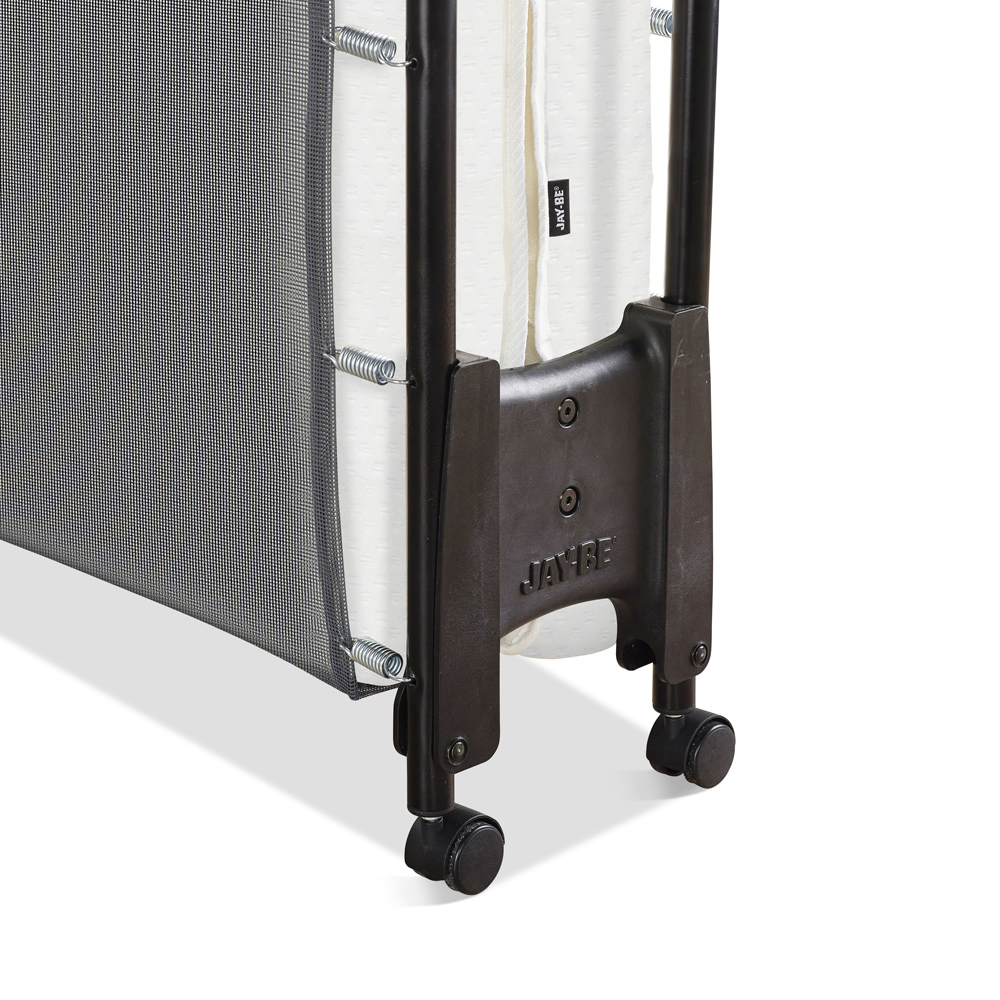 Experience blissful sleep on the Jay-Be Single Revolution Folding Bed, featuring a supportive Memory e-Fibre mattress. Unlike traditional folding beds, this model offers superior comfort and sturdiness. Its full-width headboard, crafted from sustainably sourced FSC-certified oak effect wood, adds a touch of elegance. Effortless mobility is ensured by 360° castors. The breathable, foam-free mattress boasts a 1cm e-fibre comfort layer for a luxuriously soft, hypoallergenic feel, encased in a contemporary knitted cover. The J-Tex sprung base system provides lasting support and comfort. Environmentally conscious construction uses recycled plastic materials, and the mattress is 100% recyclable. This bed surpasses British and European safety standards.