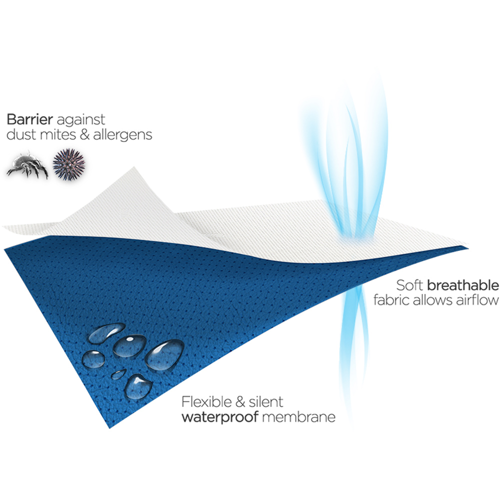 Safeguard your Jay-Be small double folding bed with this superior waterproof mattress protector. Designed specifically for Jay-Be beds, its breathable micro-pore design prevents overheating while offering robust protection against dust mites, allergens, and mould. The quiet, flexible membrane, coupled with a soft knitted top layer, ensures both comfort and reliable shielding. Simple to care for, this protector is machine washable at 40°C and functions as both a fitted sheet and protector, extending the lifespan of your mattress.