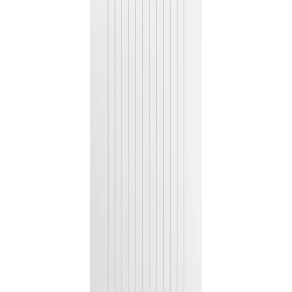 Enhance your home's interior with this elegant Aria White Glazed Primed Internal Door. Its contemporary fluted design, featuring full-length white grooves and a primed ready-to-paint finish, offers a premium look that complements both traditional and modern styles. Constructed with a semi-solid core, this ready-to-fit door adds a touch of sophistication to any room. Measuring 1981 x 610 x 3.5mm, it's a perfect size for numerous applications. Please note: Each pane is indelibly marked to comply with building regulations, these markings are discreet but visible. The number of vertical grooves varies depending on door width.