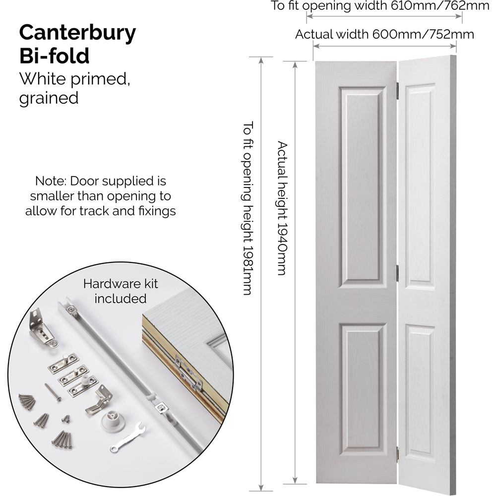 JB Kind Canterbury Moulded Panel White Grained Bi-Fold Internal Door 1981 x 610mm