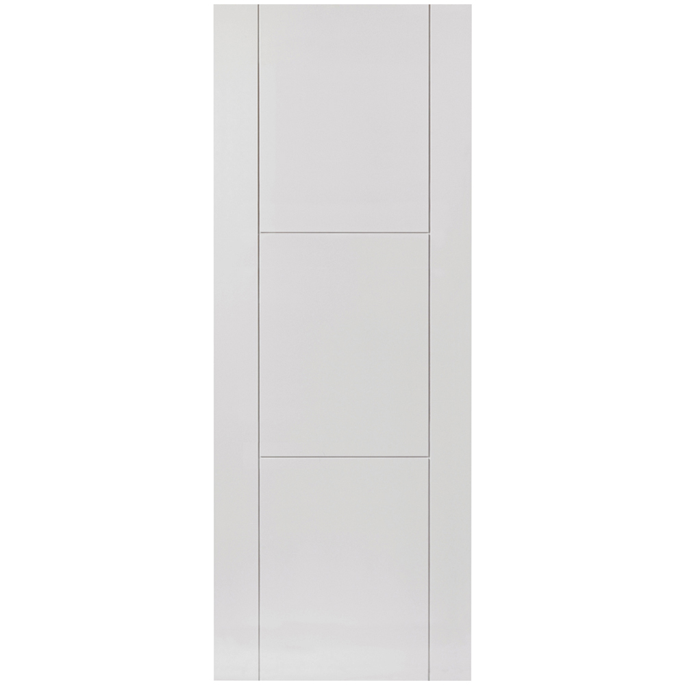 The Mistral White Primed internal door offers timeless style and lasting quality. This beautiful door features three elegant ladder-style panels, precisely grooved into a solid core MDF construction for strength and durability. Pre-primed for easy painting, it allows you to create a truly bespoke finish. Perfect for pocket door systems, it also boasts a 30-minute fire rating. Enjoy peace of mind with our 15-year guarantee. Dimensions: 2040 x 726 x 44mm. Note: Installation of fire-rated doors must comply with building regulations.