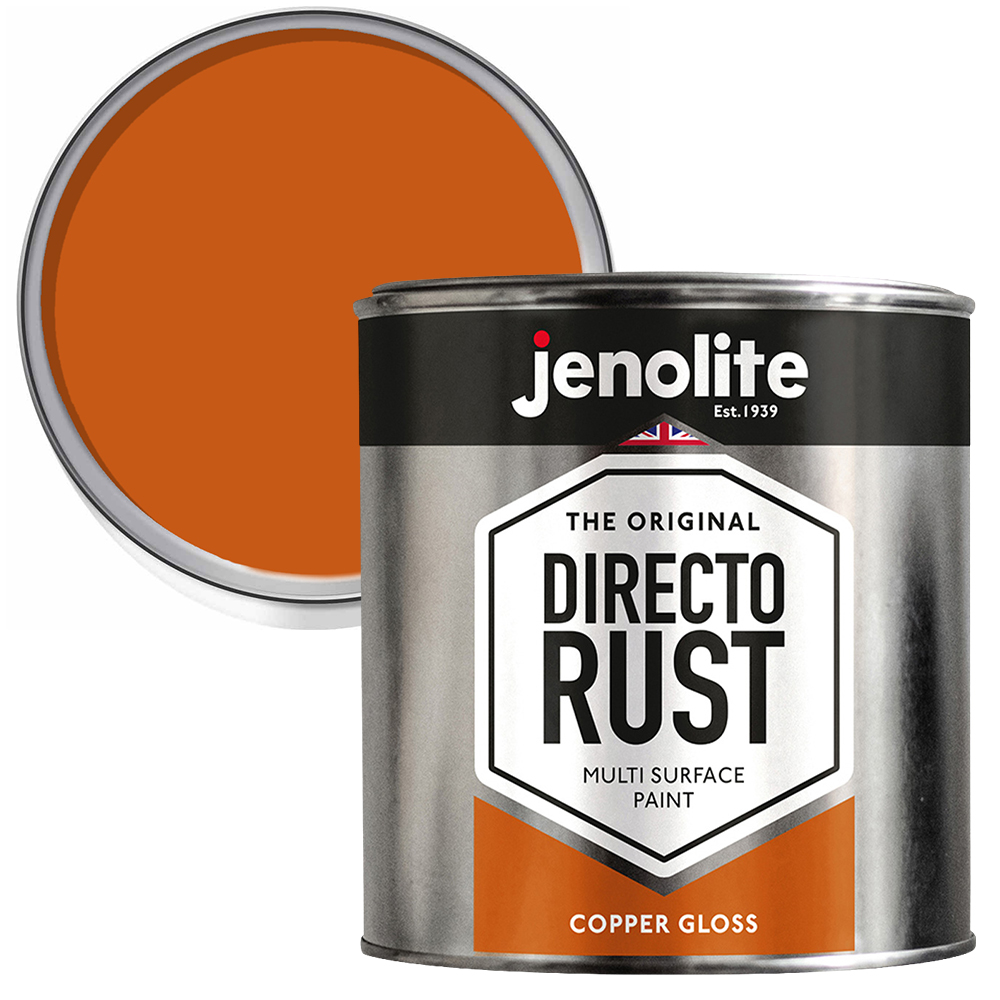 Transform your home's interior or exterior with Jenolite DirectoRust Copper Gloss Paint (1L). This unique, all-in-one formula acts as primer, undercoat, and topcoat, saving you valuable time. Directly apply its smooth, high-quality satin finish to metal, wood, plastic, ceramic, and even rusted surfaces for a stunning, long-lasting result. Its superior rust and corrosion resistance ensures enduring beauty, whether used indoors or outdoors. Available in a range of colours and finishes.