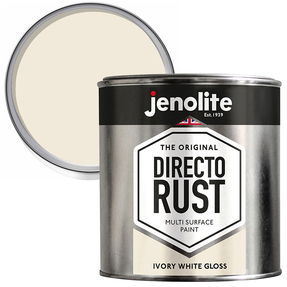 Transform your home with Jenolite DirectoRust Ivory White Gloss Paint, a 1L can of versatile brilliance. This unique formula simplifies your project, acting as primer, undercoat, and topcoat all in one—saving you valuable time. Directly apply to metal, wood, plastic, ceramic, and rusted surfaces. Achieve a smooth, high-quality satin finish that resists rust and corrosion for a long-lasting finish, indoors or out. Available in a range of colours and finishes.