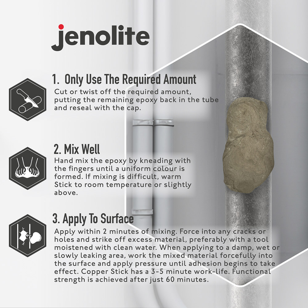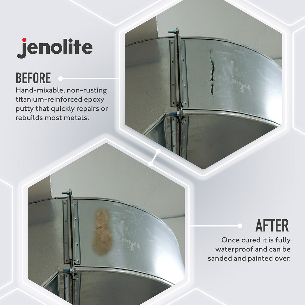 Conquer metal repairs with Jenolite Titanium Epoxy Putty Repair Stick. This high-strength, titanium-reinforced epoxy resin putty rapidly rebuilds and repairs metal, tackling cracked, snapped, and holed metal. Its hand-mixable formula sets quickly, delivering an industrial-strength solution for high-temperature applications (up to 280°C). Fully cured in 60 minutes, the waterproof putty is ready for drilling, tapping, machining, grinding, filing, and painting. Corrosion-resistant and incredibly durable, it's the ultimate addition to any mechanic's toolkit. 112g.