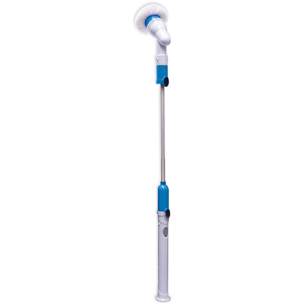 Conquer cleaning with the Hurricane Spin Scrubber! This cordless, rechargeable tool features three interchangeable heads spinning at 300 rpm for powerful cleaning. A four-foot extension pole provides effortless reach to high and low areas, while the flat brush tackles large tiled surfaces. The pointed corner brush is perfect for grout, tracks, and taps, and the versatile multi-purpose brush cleans hard-to-reach spots around toilets and basins. Say goodbye to limescale, soap scum, and grime.