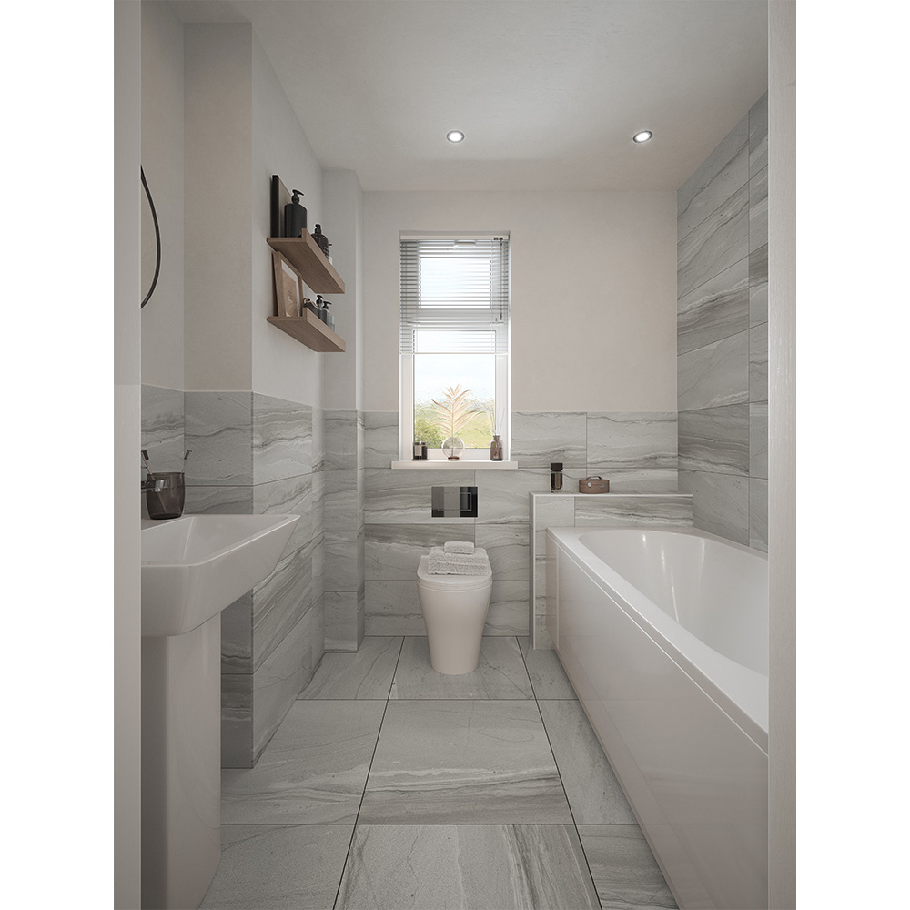 Bring the beauty of nature indoors with the Johnson Tiles 600x600 Haven Slate Floor Natural. Showcasing the exquisite detail of crosscut stone, these tiles boast realistic colour variations and intricate mineral veins achieved through high-definition inkjet printing. Their versatile, neutral tones ensure they will complement any interior style, offering a touch of nature-inspired elegance to any interior. Proudly designed in the UK, these durable tiles contain up to 50% recycled content, offering an environmentally conscious and sophisticated flooring solution. They're a perfect choice for those looking to combine durability with sophisticated design.