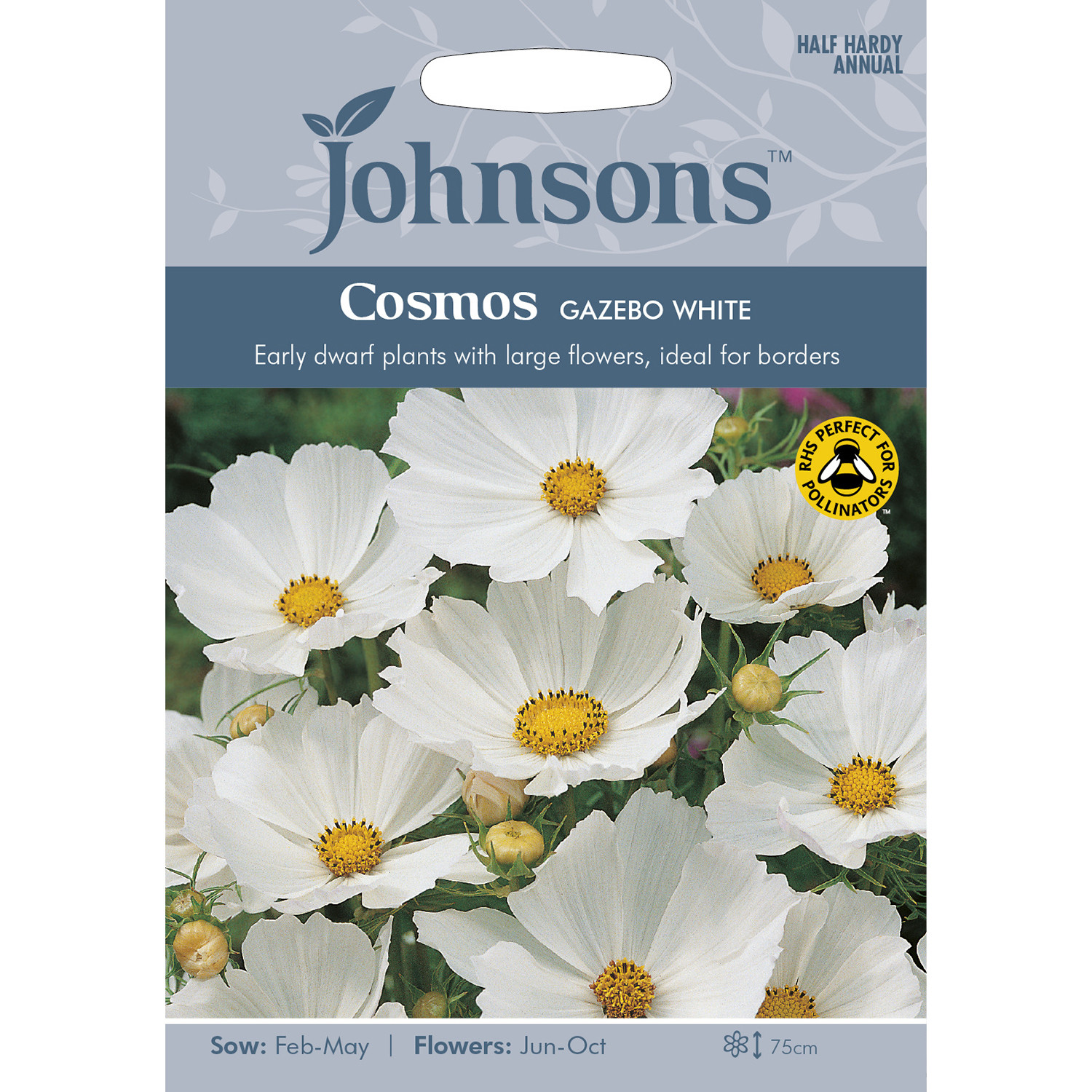 Brighten your garden with this pack of Cosmos Gazebo White seeds. These early dwarf plants boast large flowers, perfect for borders. Plant them in well-drained soil between February and May for a stunning display from June to October. A beautiful addition to any garden, bringing vibrant colour to your surroundings.