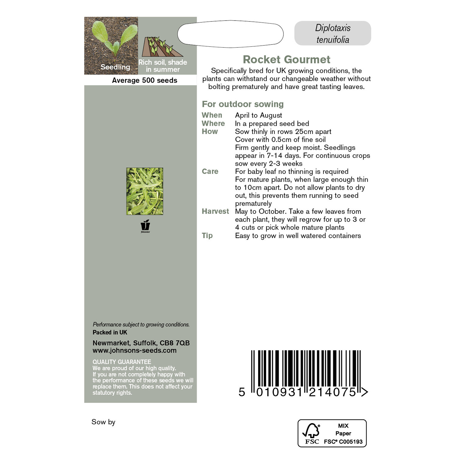 These Rocket Gourmet Seeds are specifically bred to thrive in UK growing conditions and withstand the changeable weather conditions. Producing attractive leaves with a light green colour and great taste, these rocket seeds are perfect to harvest for your salads during the summer months.