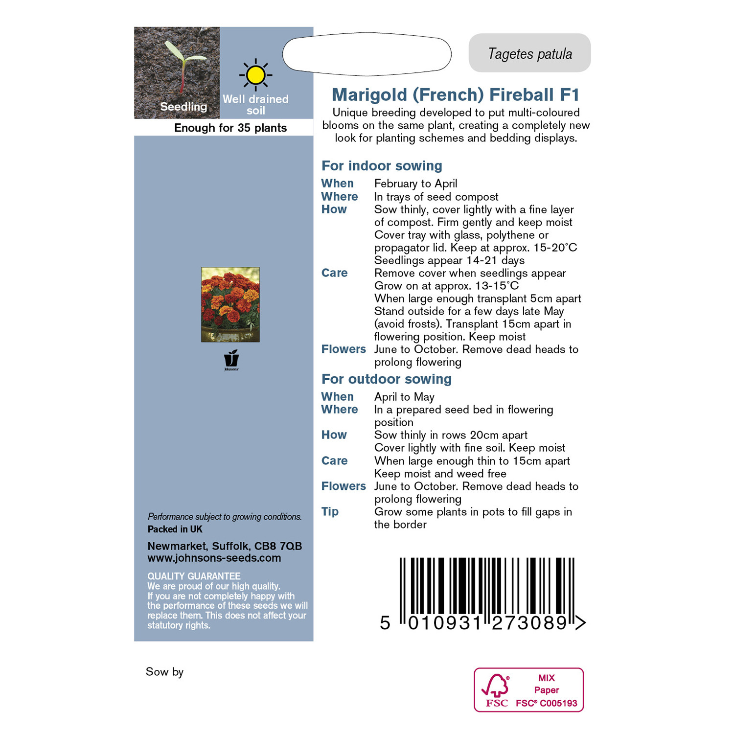 Create a vibrant garden display with Johnsons Marigold French Fireball Flowers. These uniquely bred marigolds produce multi-coloured blooms on a single plant, perfect for bedding schemes or any garden setting. Sow seeds in well-drained soil from February to May for a standout display of crested flowers.