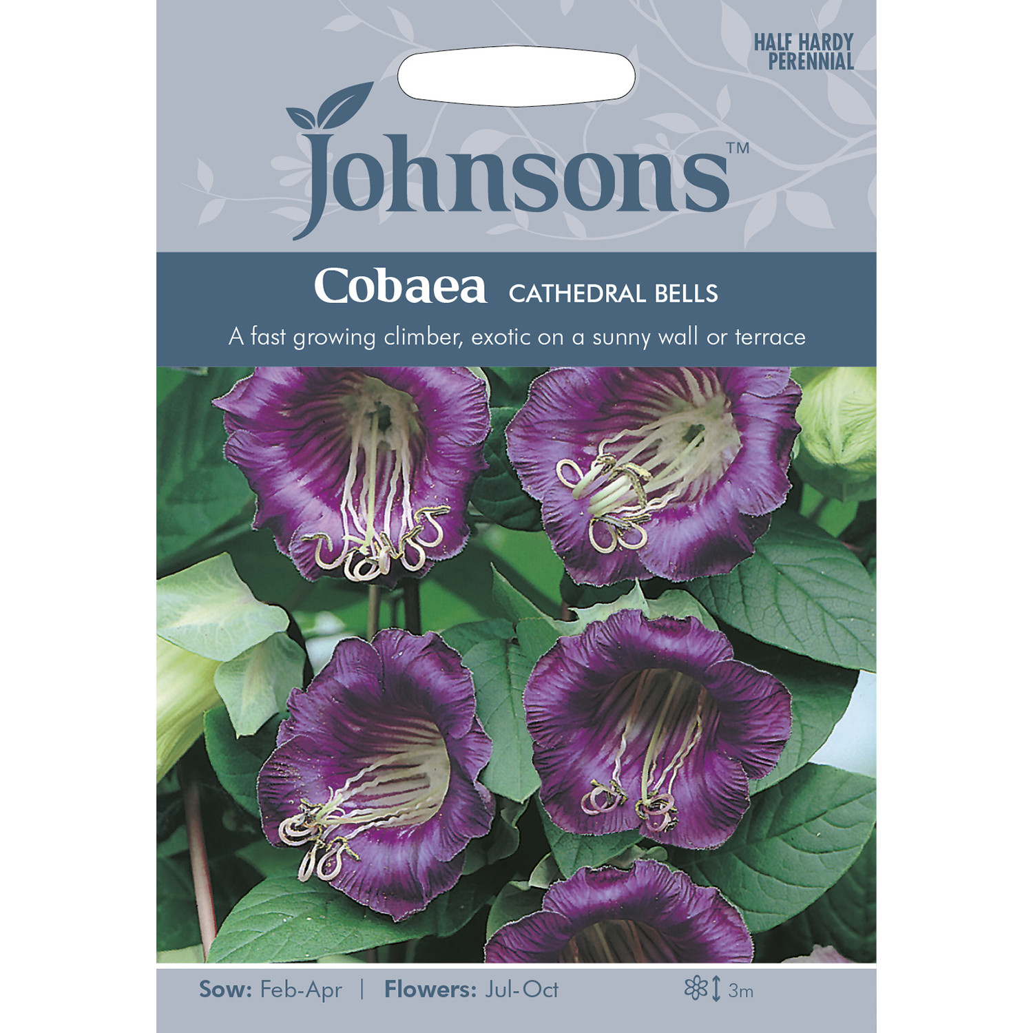 A vigorous climbing plant, Cobaea Cathedral Bells produce large flowers that transform from bright green to purple. Ideal for sunny walls or terraces, these easy-to-grow beauties thrive in well-drained soil. Plant between February and April for a spectacular display from July to October. Perfect for any garden.