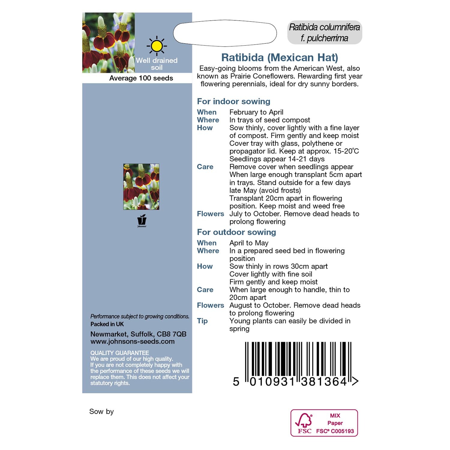 Unusual and characterful, Johnsons Ratibida (Mexican Hat) Seeds are easy to grow. These Prairie Coneflowers, native to the American West, will be a captivating addition to any garden.