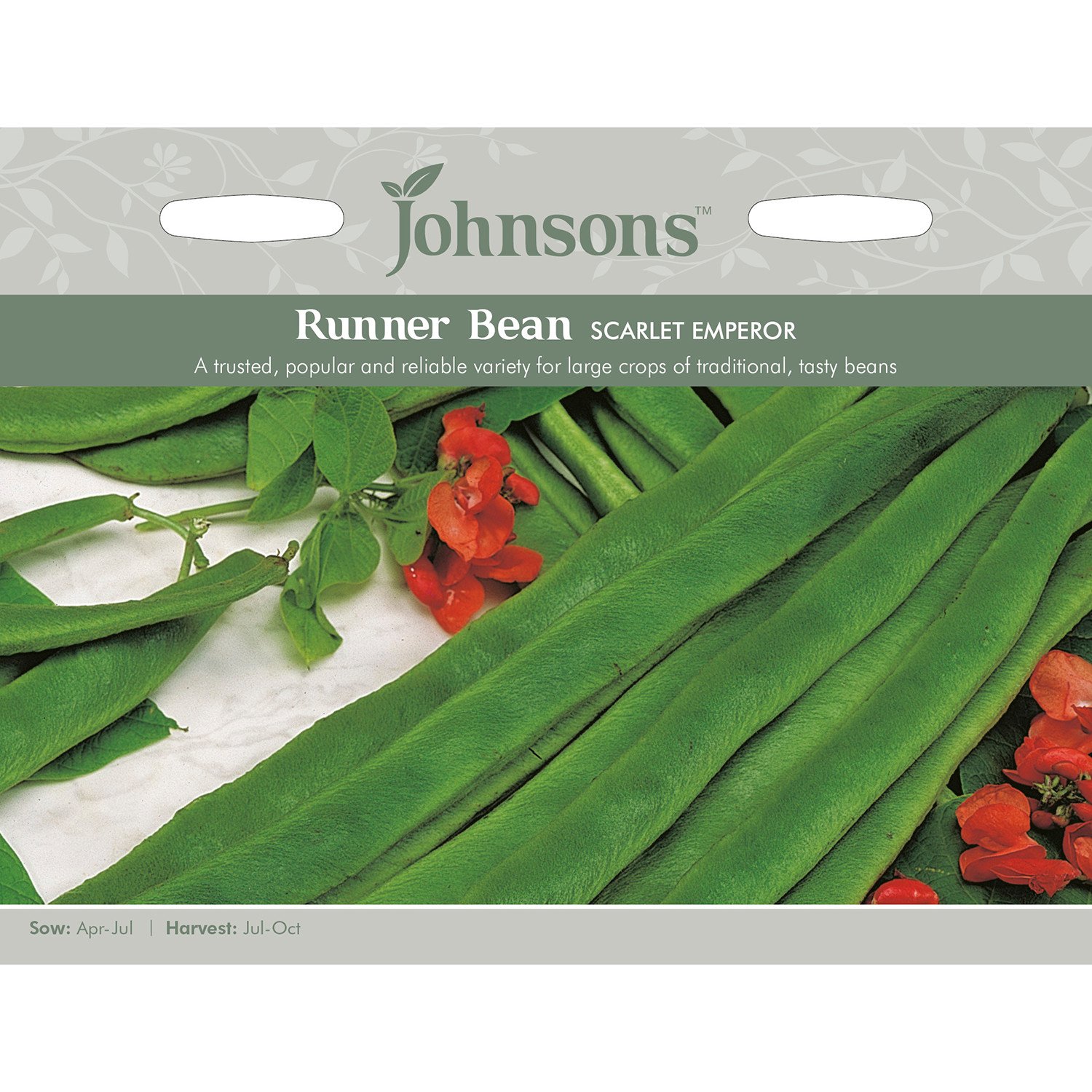 A very popular variety that produces large crops over a long period, this Pack of Scarlet Emperor Runner Bean Seeds is perfect for any keen gardener looking to expand their existing vegetable patch. Suitable for sowing into well-dug manured soil between the months of April and May for indoor growth, or between May and early July for outdoor growth, these smooth dark-green pods are packed full of flavour and even suitable for freezing once harvested.