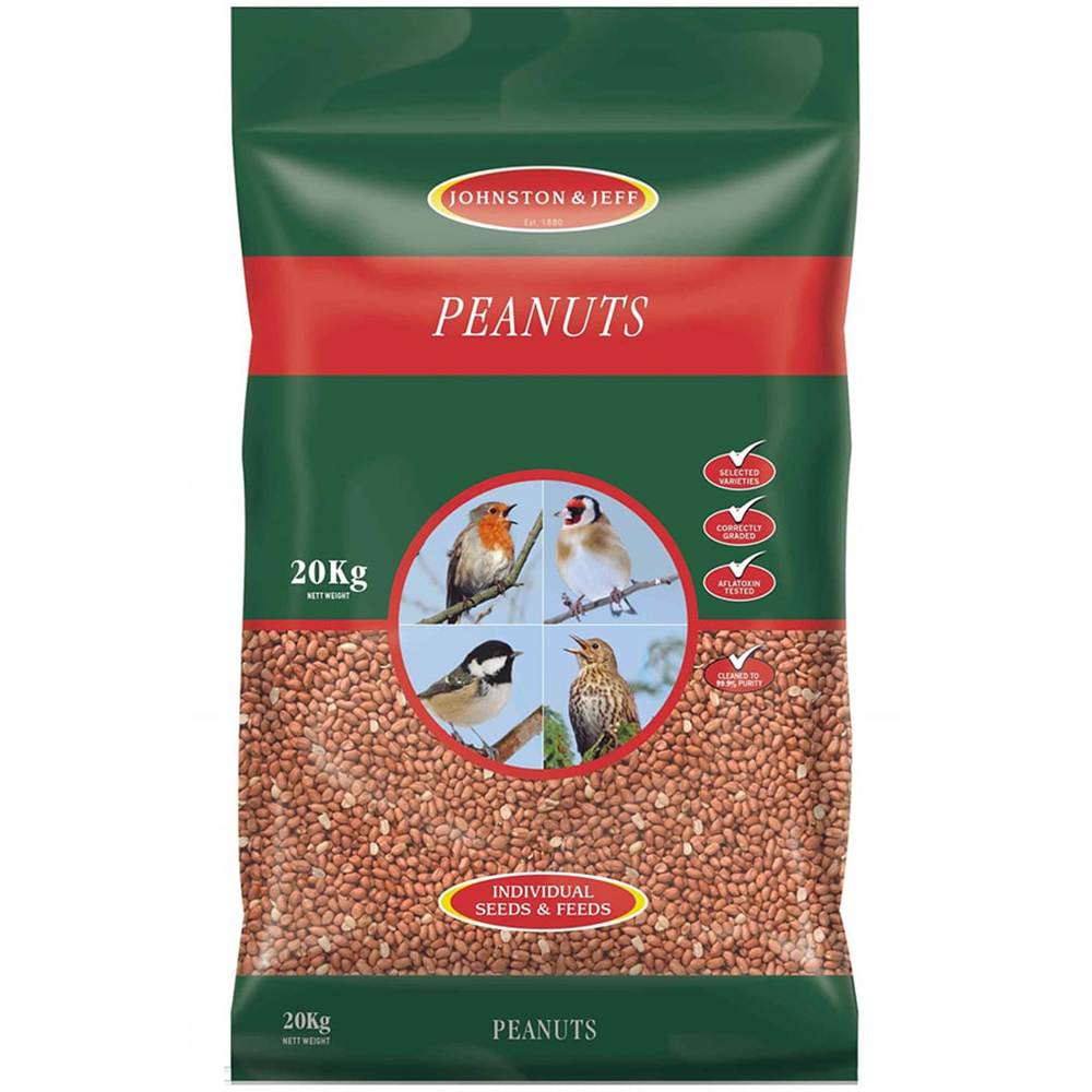 Bring a vibrant flock to your garden with these Johnston and Jeff Peanuts. A favourite among birds, their high oil and caloric content provides essential energy for a day of flight. Cleaned to 99.9% purity, this selected variety appeals to a wide range of species. Supplied in a 20kg bag. Remember to always carefully read all packaging instructions and advice before use.