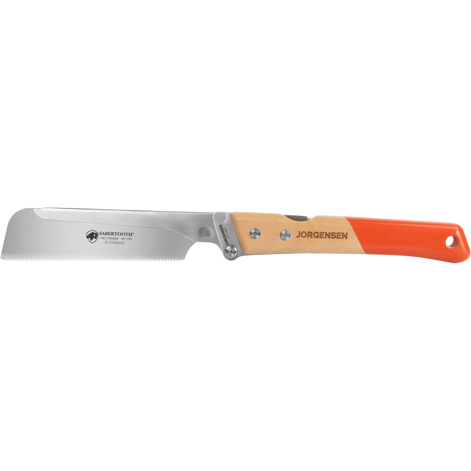 The Jorgensen Pro Folding Dovetail Pull Saw is the ultimate tool for precision woodworking. Designed for fine, accurate cuts in dovetail joints, tenons, musical instruments, and other intricate work, this saw delivers superior performance. Its premium, heat-treated, and electroless nickel (EN) plated SK5 Japanese steel blade ensures faster, smoother cutting. The folding mechanism protects the blade during storage and transport, while the comfortable, non-slip handle provides excellent control and reduces hand fatigue. This saw is a must-have for any serious woodworker demanding both precision and convenience.