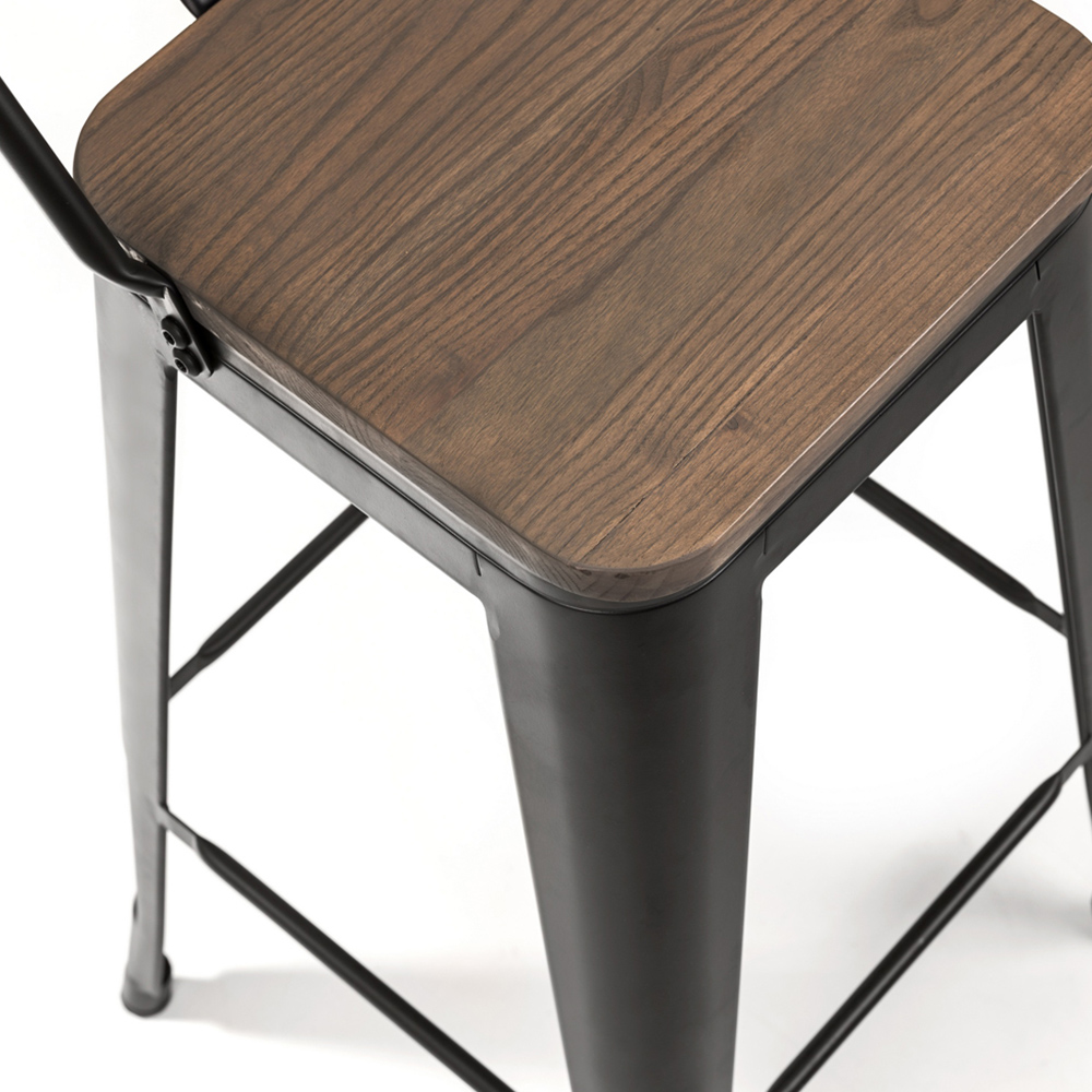 Elevate your home bar with the Grafton. This stylish bar table and stool set adds a touch of industrial chic to any space. Crafted from robust solid elm wood and finished with a sleek satin black powder-coated steel frame, the Grafton comfortably seats four. Two coordinating Grafton bar stools complete the set, creating a modern and inviting area perfect for drinks or casual dining.