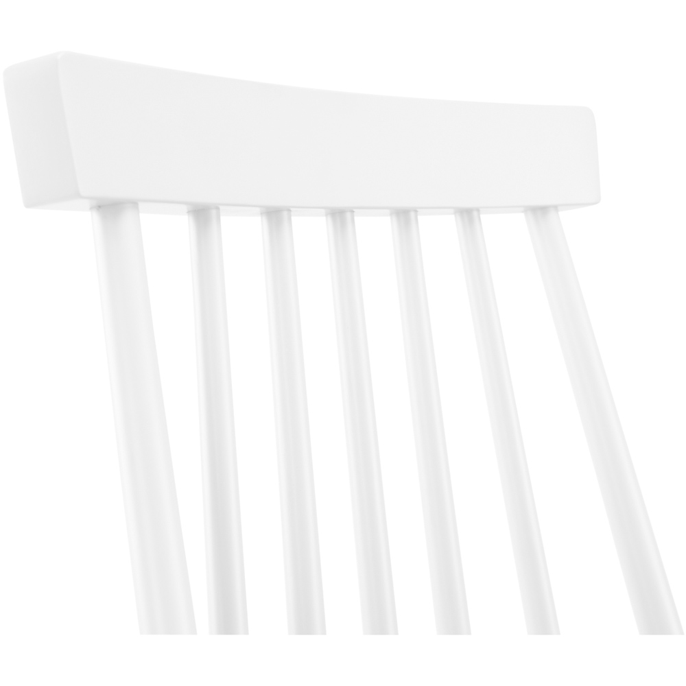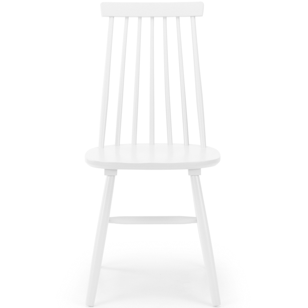 Introduce a touch of timeless elegance to your dining area with the Julian Bowen Alassio Dining Chairs. These chairs, sold as a set of two, showcase a beautifully simple design, subtly updated for the modern home. The tall, graceful spindle back design and attractively tapered legs are crafted entirely from resilient rubberwood. Their versatile aesthetic ensures they'll pair seamlessly with a wide range of table styles, effortlessly enhancing your dining space for any occasion. Offering a luxurious feel, striking design, and impressive durability, these chairs promise to enrich your dining experience for years to come. Finished in white.