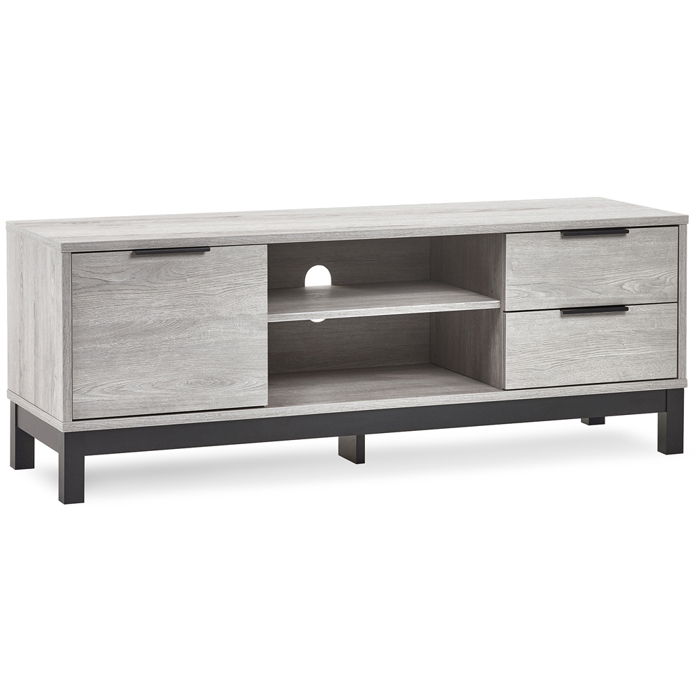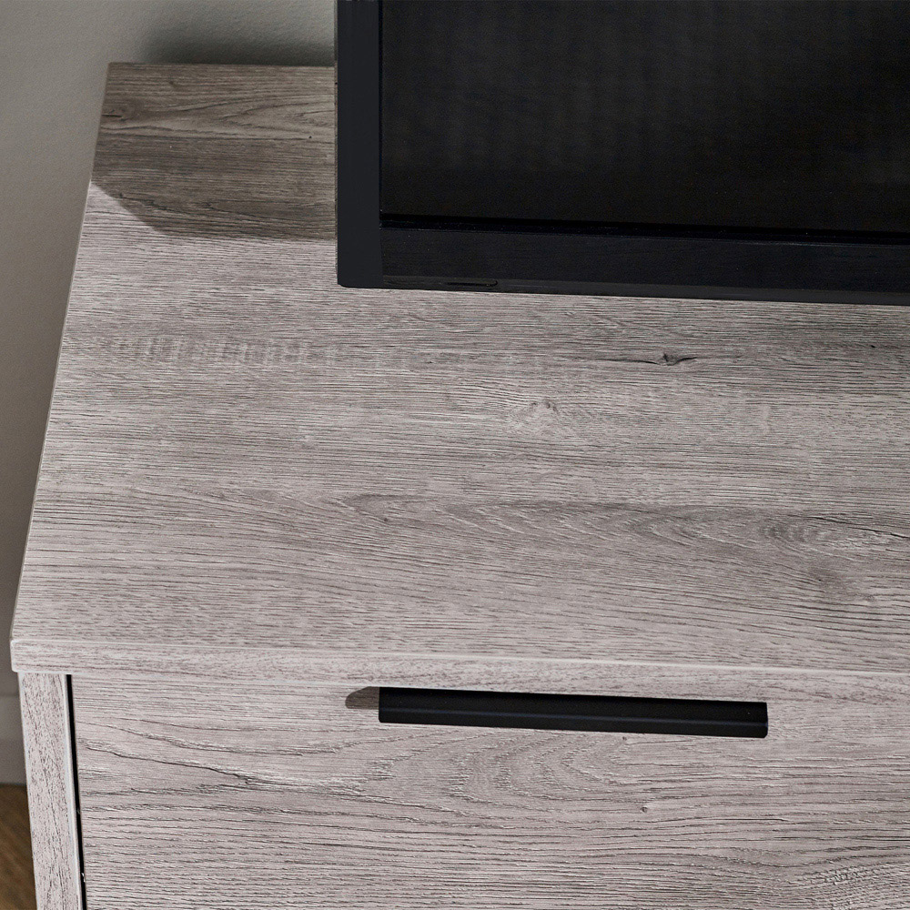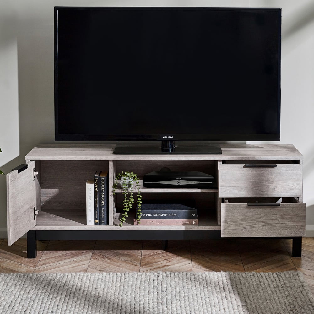 Elevate your living space with the Julian Bowen Bali Grey Oak TV Unit, a blend of style and practicality. Its modern oak finish, complemented by black legs and handles, delivers classic industrial charm perfect for bedroom or living room. Effortless assembly via innovative click furniture technology ensures both durability and ease of maintenance. Ample storage is provided by a spacious cupboard, two pull-out drawers, and a central shelf, creating an organised entertainment area. This unit offers both storage and display options, keeping your essentials neatly tucked away.