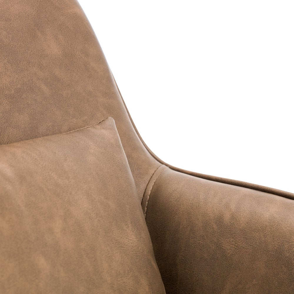 The Bowery Brown Faux Leather Swivel Chair brings classic style to your living space with a modern twist. Its industrial design and 360-degree swivel function add a touch of contemporary flair to any room. Sink into luxurious padding and soft-touch brown faux leather upholstery. This timeless chair complements a variety of décor styles, making it a versatile addition to your home.