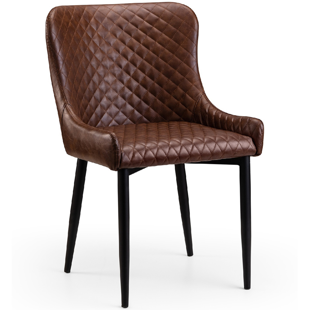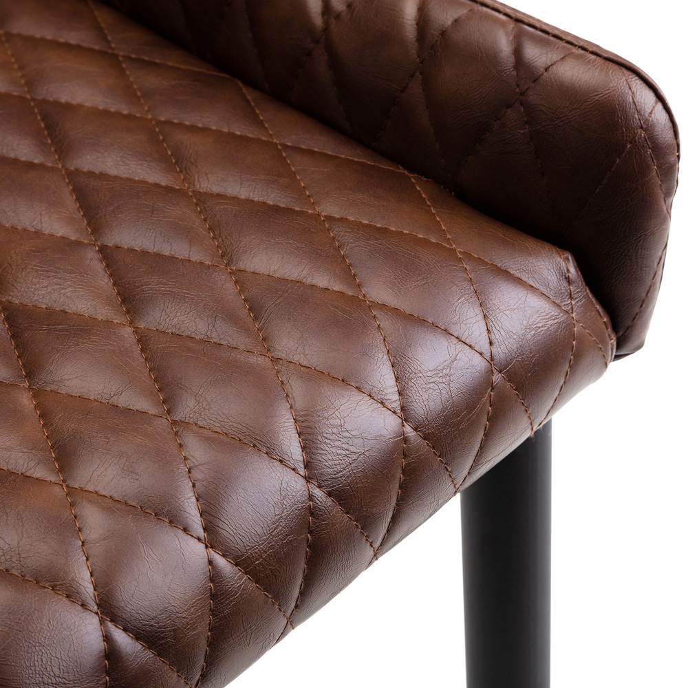 Bring warmth and character to your dining area with this eye-catching dining set. The round, solid oak table showcases a beautiful rustic finish, highlighting the wood's natural grain. Its standout feature is the set of industrial trestle-style metal legs, bringing a vintage-inspired edge to your home. Complementing the table are four luxe brown chairs, designed for both comfort and style, with cushioned seats perfect for relaxed dining. Comfortably seating up to four people, this spacious dining set effortlessly blends rustic charm with sleek, industrial design, making it a versatile statement piece for any modern home.