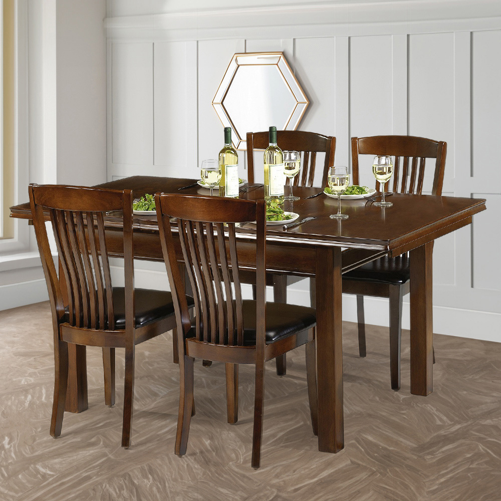 Introduce a touch of refined charm to your dining space with the Julian Bowen Canterbury Extending Dining Set. This four-seater round ensemble, finished in a rich mahogany hue, presents a classic statement for your home. The set features a stylish pedestal base, crafted from solid Malaysian hardwood, ensuring resilience and elegance. The Canterbury table cleverly extends into an oval shape, comfortably accommodating up to six diners, thanks to its smooth butterfly mechanism, offering space-saving practicality. Complemented by four perfectly matching Canterbury chairs, this traditional design dining set is sure to elevate your dining experience.