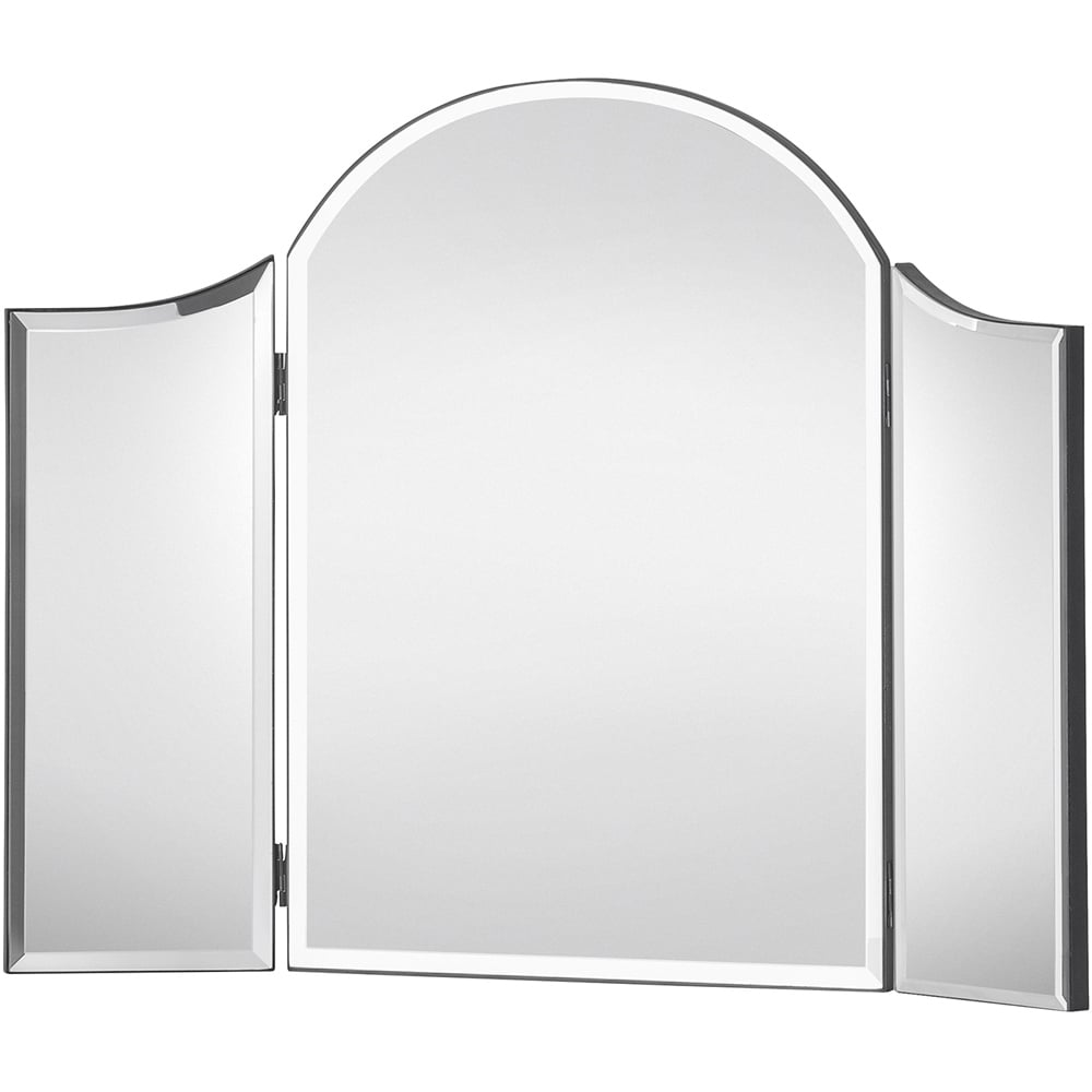 The Canto dressing table mirror from Julian Bowen brings a touch of glamour to any bedroom. Its subtly curved, bevelled edges create an elegant profile, while the practical addition of adjustable folding side mirrors enhances its functionality. The soft felt backing adds a final refined touch, completing this stylish and practical piece.