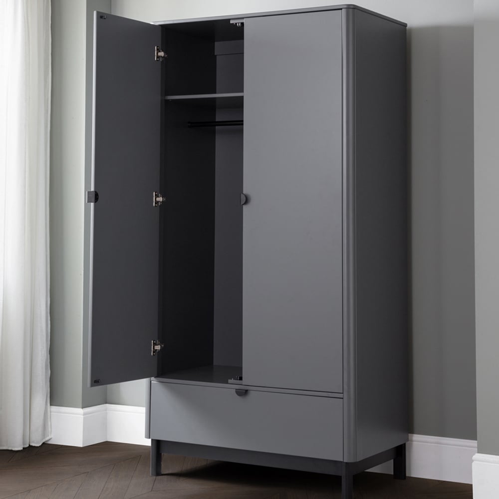 Julian Bowen Chloe 2 Door Single Drawer Storm Grey Wardrobe