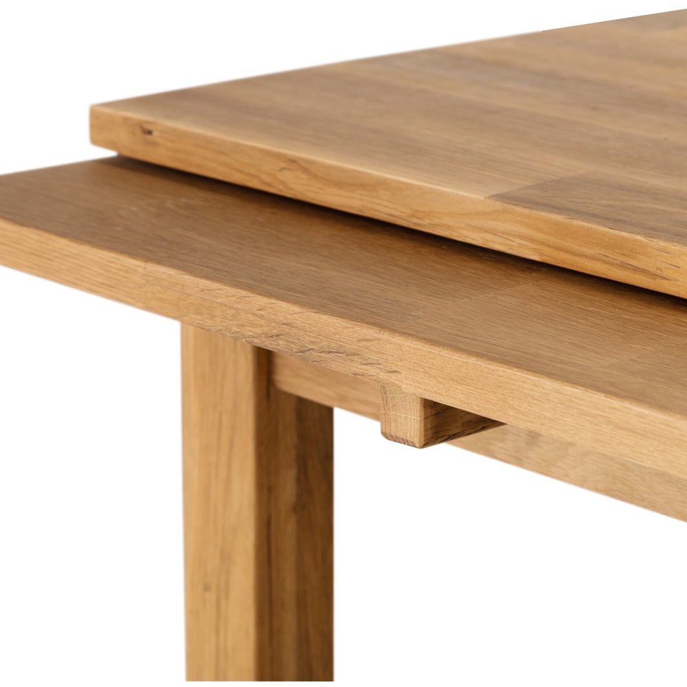 Make everyday dining extraordinary with the Coxmoor Oak Extending Dining Table. This stunning piece effortlessly blends traditional charm with modern practicality, making it a captivating centrepiece for any dining room. Crafted from solid white oak, its rich oiled finish beautifully showcases the natural wood grain, promising both durability and timeless appeal. Perfect for smaller spaces, its clever retractable leaf extension system smoothly transforms it from a cosy setting to one that comfortably accommodates larger gatherings. Enjoy the ease of extending the table for those special occasions, then effortlessly store the leaf away when space is at a premium.