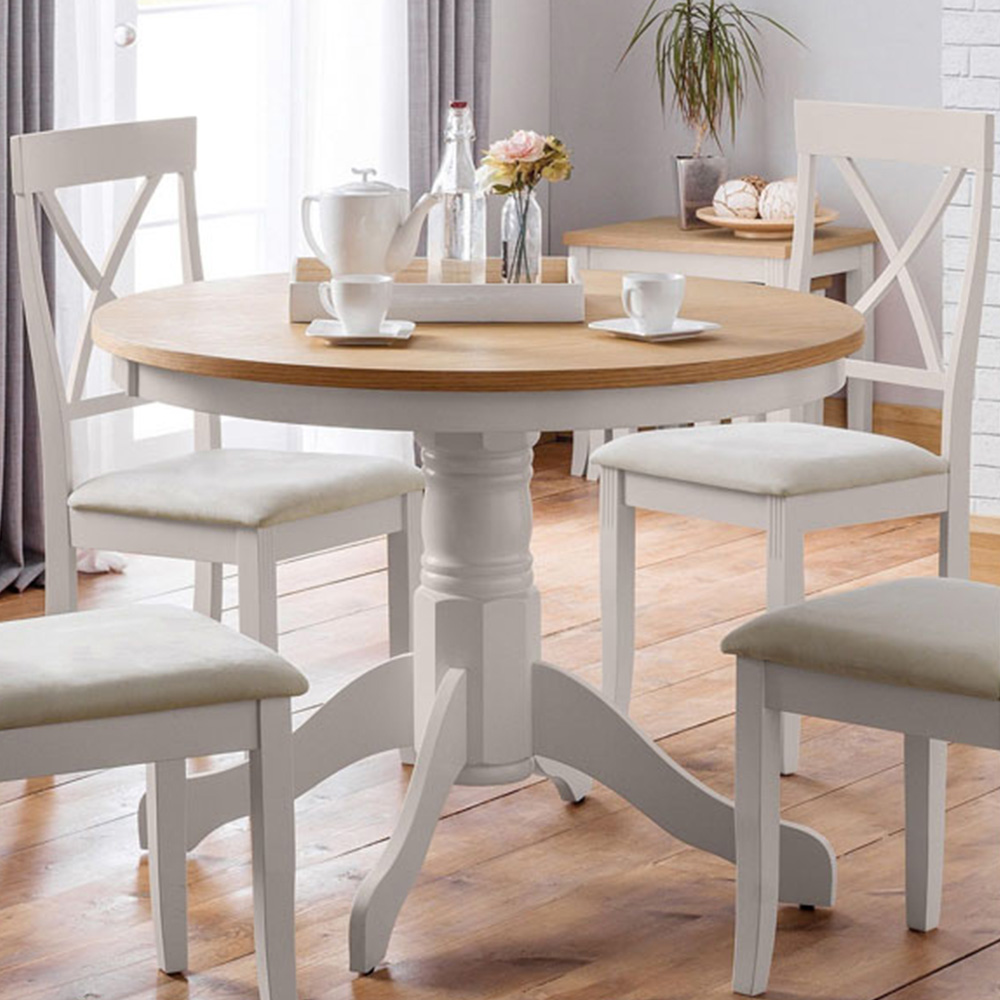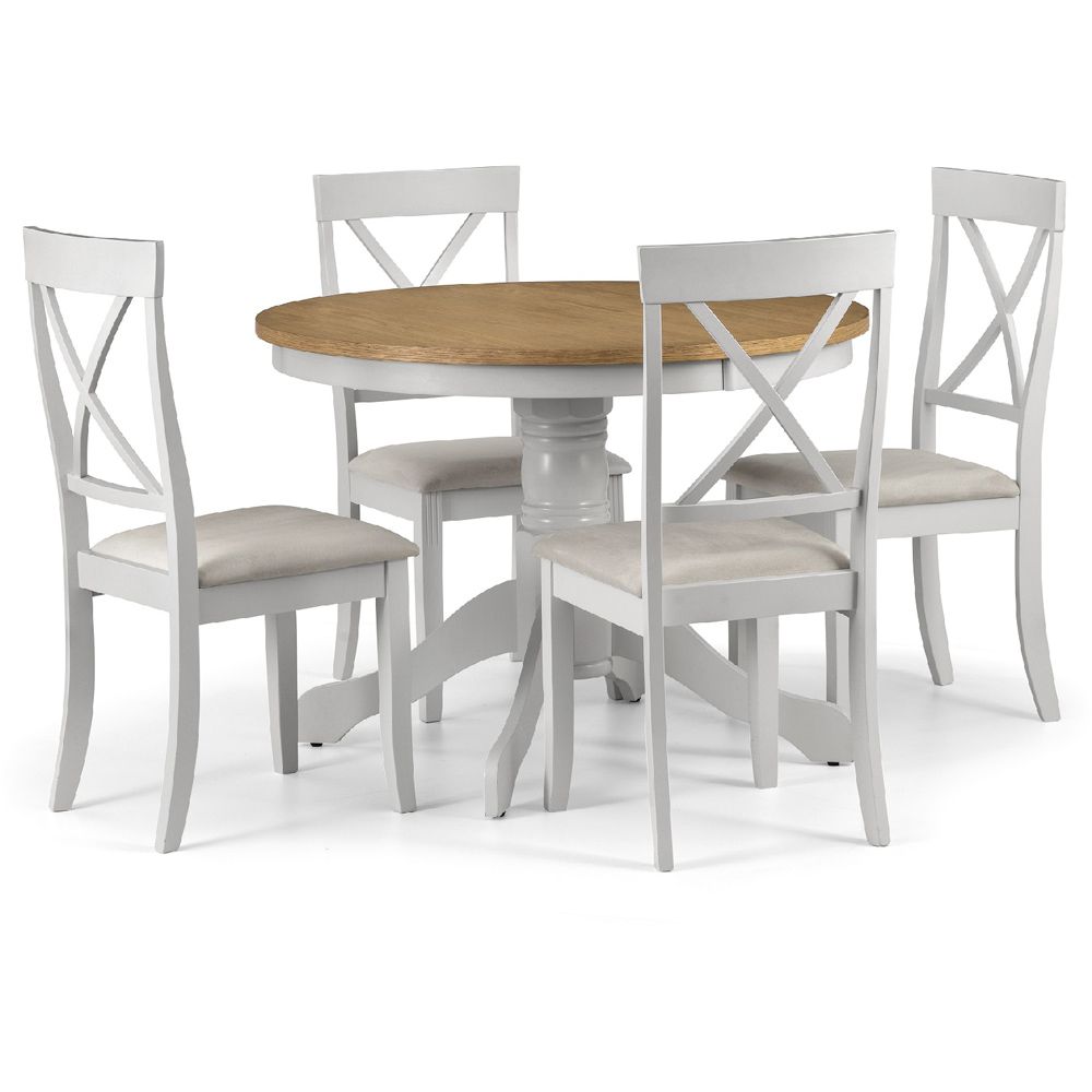 Julian Bowen Davenport 4 Seater Round Pedestal Dining Table Oak and Elephant Grey