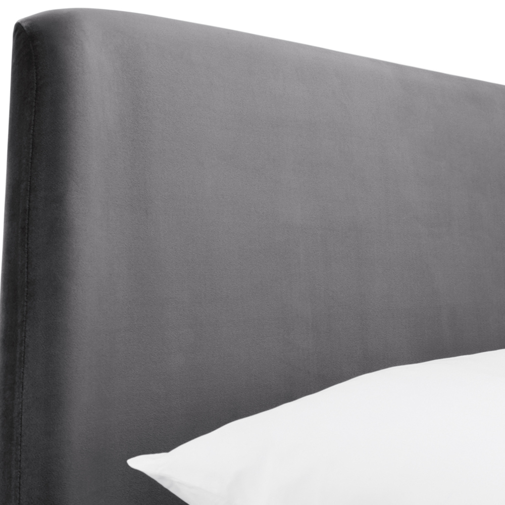 Introduce a touch of elegance and comfort to your bedroom with the Frida Double Grey Curved Velvet Bed from Julian Bowen. The gorgeous, curved headboard design, combined with sleek grey velvet upholstery, creates a charming, modern aesthetic. Supported by stylish black legs, this double bed is perfect for smaller bedrooms, offering a space-saving solution without compromising on style. This curved double bed helps you maximise storage space while making a statement in any interior decor.