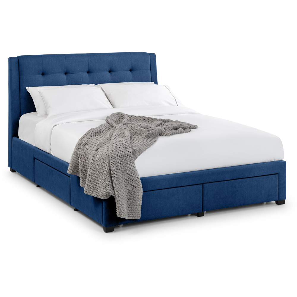 Julian Bowen Fullerton Super King Blue Linen Bed Frame with Underbed Drawers