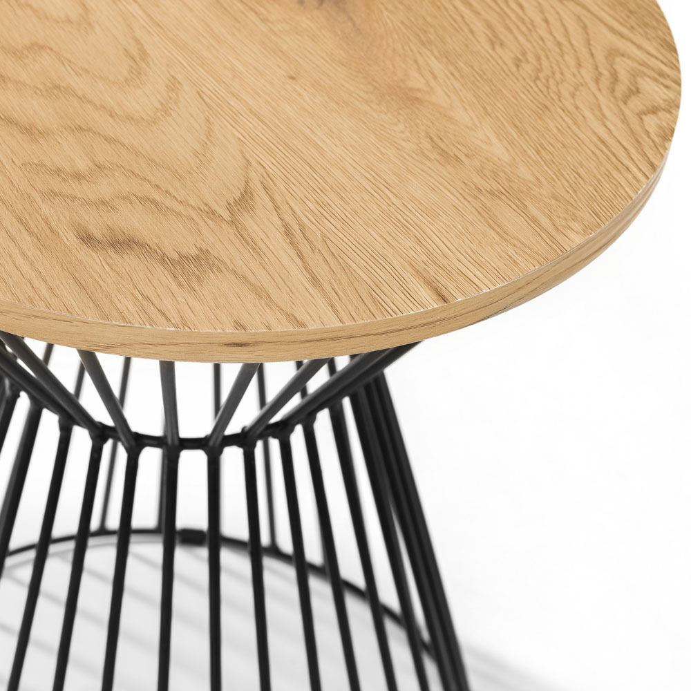 Add industrial style to your living space with the Julian Bowen Jersey Euro Oak Round Wire Lamp Table. Its round oak-effect top, set on a black wire frame, creates a striking contrast, blending classic and modern aesthetics. This piece offers both captivating style and practical functionality.