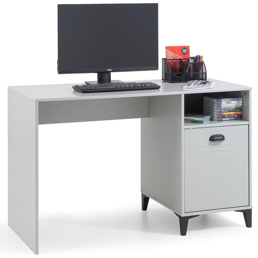 Julian Bowen Lakers Single Drawer Locker Desk Metal Effect and Grey Lacquer