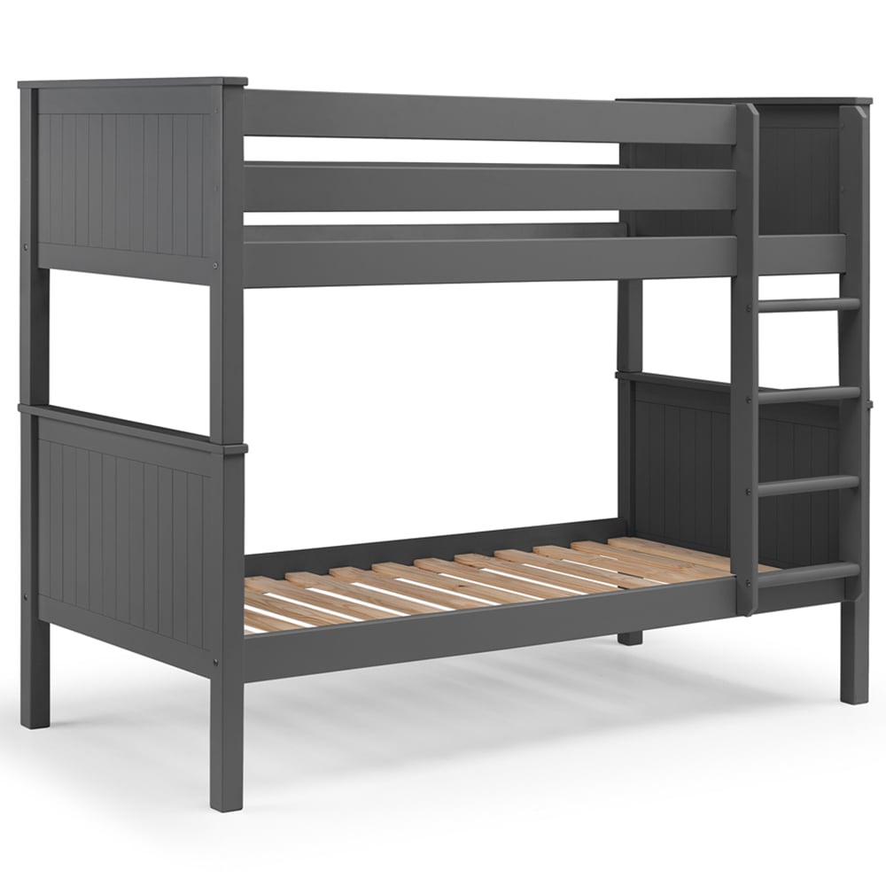 Add a touch of modern Nordic style to your children's room with the Julian Bowen Anthracite Maine Bunk Bed. Its clean lines and anthracite finish create a timeless look that complements various interior designs. Built for safety and durability, this strong bunk bed easily converts into two single beds, making it a practical choice for growing families or guest rooms.