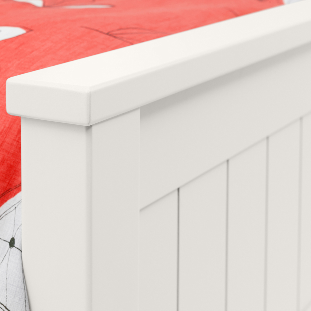 Upgrade your bedroom with the Julian Bowen Maine Single Surf White Bookcase Bed. This single bed boasts a stylish high headboard with a shelf, perfect for storing books at arm's reach for your evening read. The timeless design features New England-style panelling and a beautiful surf white lacquer finish, all crafted from MDF. A solid slatted base ensures both comfort and extends the mattress life.