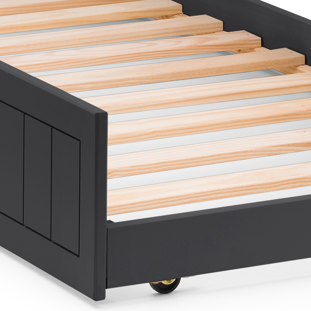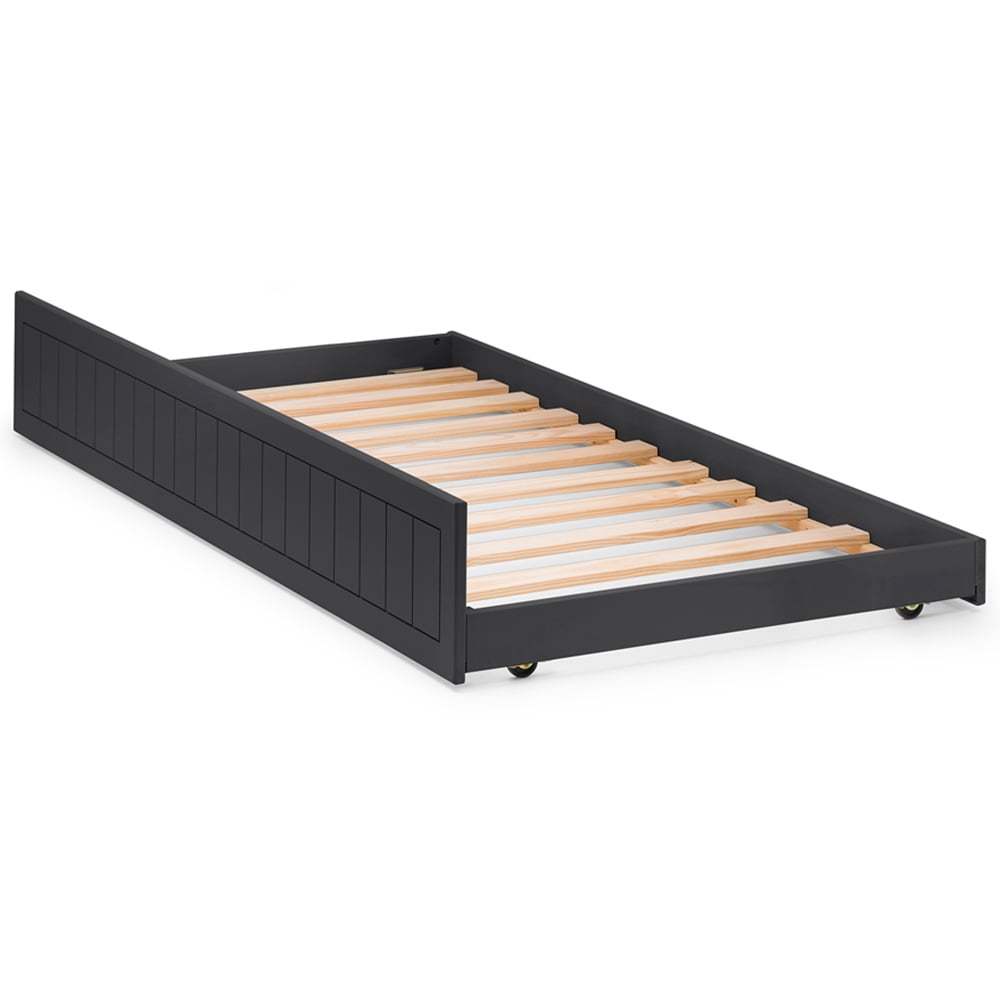 Need an extra bed for overnight guests without sacrificing valuable floor space? The Julian Bowen Maine Underbed is the perfect solution. Crafted from MDF and finished in a sophisticated anthracite lacquer, its refined panelling adds a touch of elegance to any bedroom. This cleverly designed underbed easily transforms into a comfortable sleeping space when needed, then neatly tucks away for a space-saving solution. Perfect for smaller homes or those who frequently entertain.