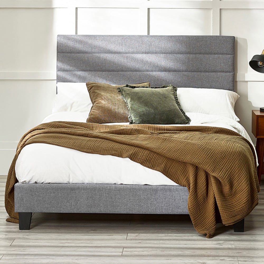 Transform your bedroom with the Merida single bed frame. Its exquisite grey linen headboard, elegantly finished with horizontal tufting, creates a stylish focal point. Crafted from solid materials, the Merida boasts a strong slatted base for superior support and lasting durability, making it a beautiful and practical addition to any home. The single size is perfect for smaller spaces.