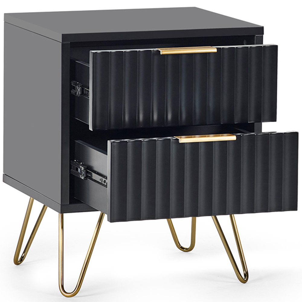 Elevate your living space with the Murano Lamp Table. Its chic matt black finish and brushed gold accents create a sophisticated, on-trend look that complements a variety of interior styles. Perfect paired with velvet furniture, this stylish table offers practical storage with two convenient drawers, helping you keep your space clutter-free.