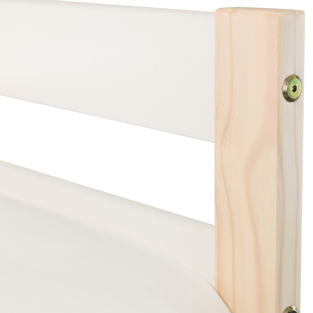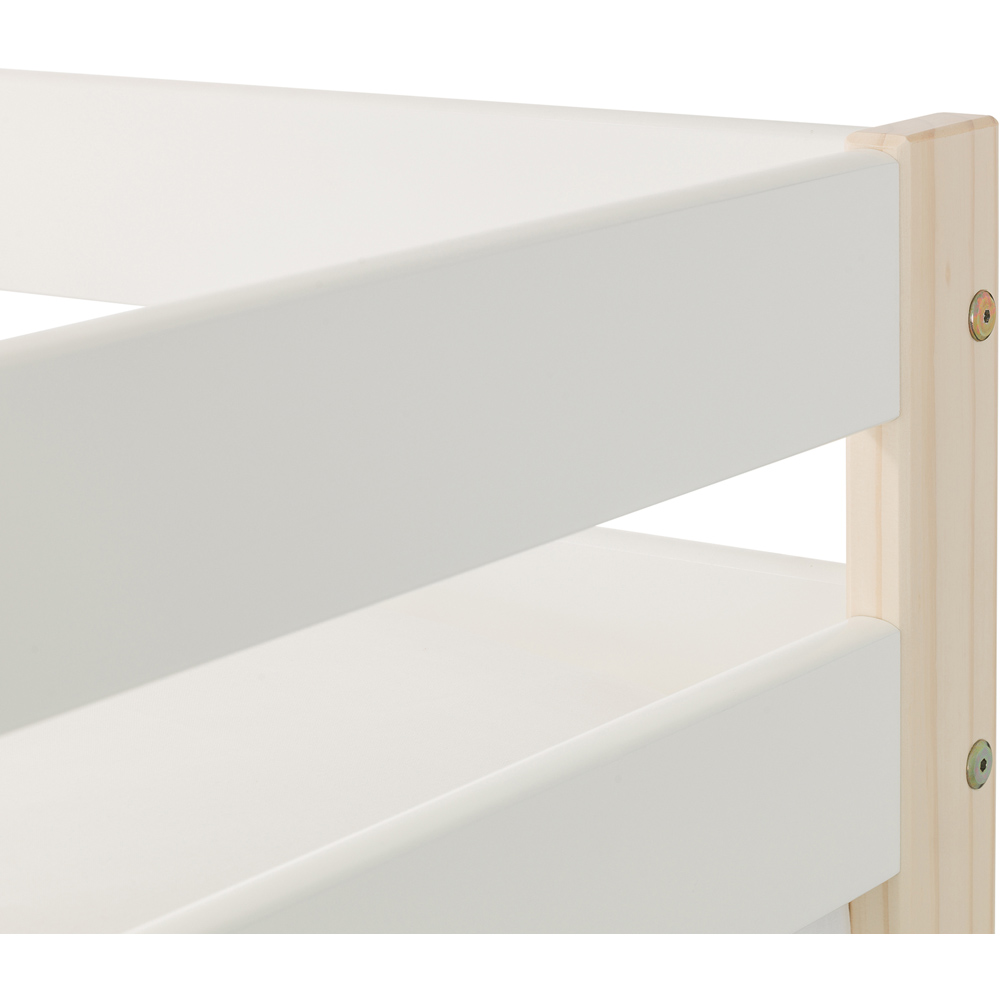Give your children the gift of a shared space with the Julian Bowen Nova bunk bed. This stylish two-tone design, in white and pine, is perfect for siblings or sleepover guests. Its clever space-saving design occupies the footprint of a single bed, making it ideal for smaller bedrooms. Built from robust solid pine and MDF, this bunk bed complements any interior style. Enhance its functionality with an optional trundle bed (sold separately), providing extra sleeping or storage space tucked neatly underneath. Please note: this bunk bed is designed for standard UK single mattresses (not included). Mattresses and bedding shown are for illustrative purposes only.