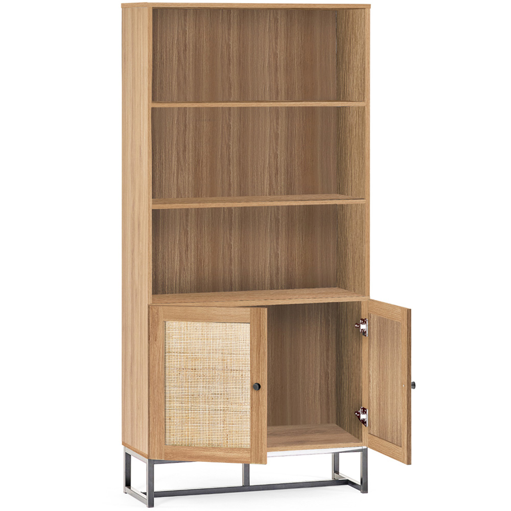 The Padstow 2-Door Oak Tall Bookcase offers a unique blend of modern construction and retro design, making it a stylish addition to any home. Its natural rattan fronts and industrial-style base create a warm yet chic aesthetic. This bookcase features two doors and three shelves, providing ample space to neatly organise your books and treasured possessions.