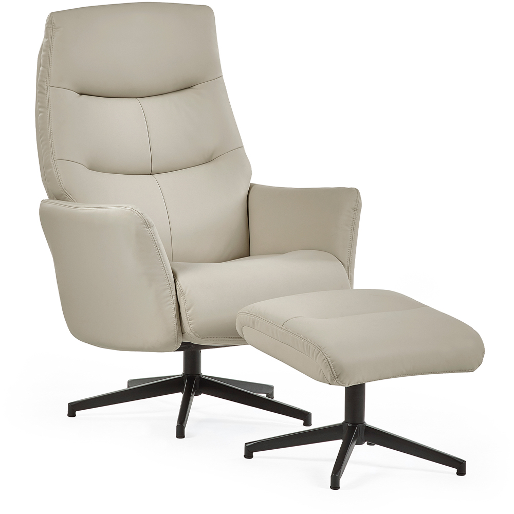Indulge in the ultimate relaxation with the Julian Bowen Priya Grey Recliner Chair with Footstool, upholstered in smooth grey faux PU leather with a subtle grain finish. Designed to elevate your everyday lounging, it features a manual recline mechanism controlled by a discreet lever tucked into the inner armrest. Effortlessly adjust your angle, whether you prefer to sit upright, lean back slightly, or fully recline and pause the movement at your ideal position. A tension-adjusted system ensures the motion feels seamless and well-balanced, offering steady support at every stage. The generously padded footstool completes the experience, giving your legs a place to rest while you unwind, read, or enjoy your favourite show. Set on a sleek black steel star base, this reclining chair combines comfort with clean contemporary style and is perfect for living rooms, cosy corners, or home offices. Requires assembly.